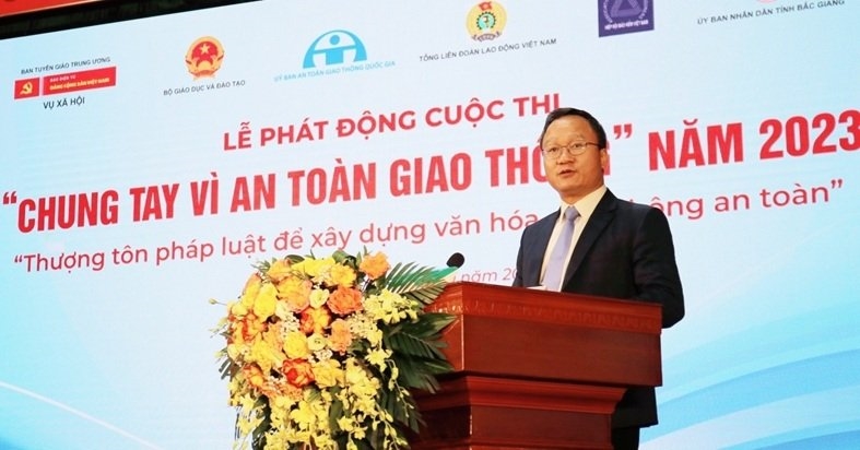 Đồng chí Khuất Việt Hùng, Phó Chủ tịch chuyên trách Ủy ban An toàn giao thông Quốc gia, Trưởng Ban Tổ chức Cuộc thi phát động Cuộc thi “Chung tay vì an toàn giao thông” năm 2023.
