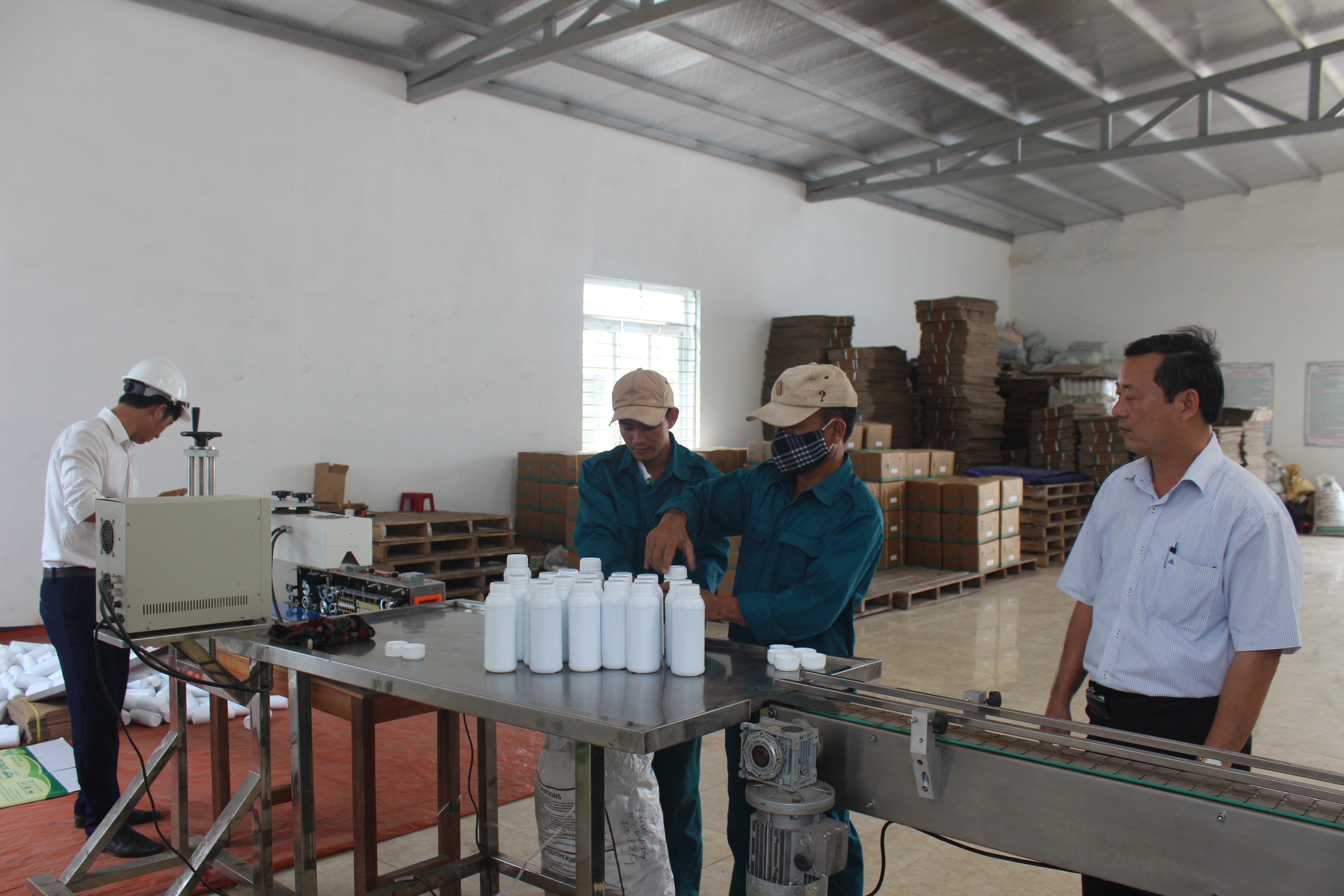 Đồng chí Cao Ngọc Anh - Phó Tổng GĐ - Chủ tịch CĐCS Tổng Công ty Sông Gianh thăm hỏi, động viên NLĐ tại các dây chuyền sản xuất.