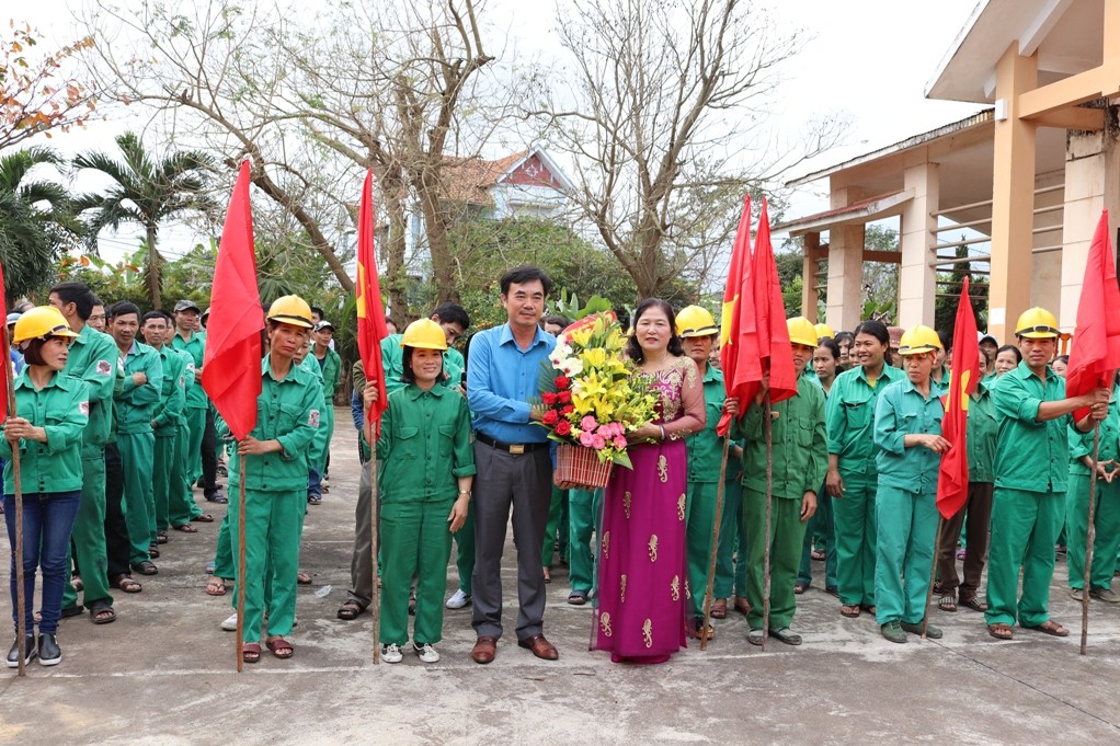 Chủ tịch LĐLĐ tỉnh tặng hoa và quà tại các đơn vị ra quân sản xuất đầu năm mới Xuân Kỷ Hợi 2019.