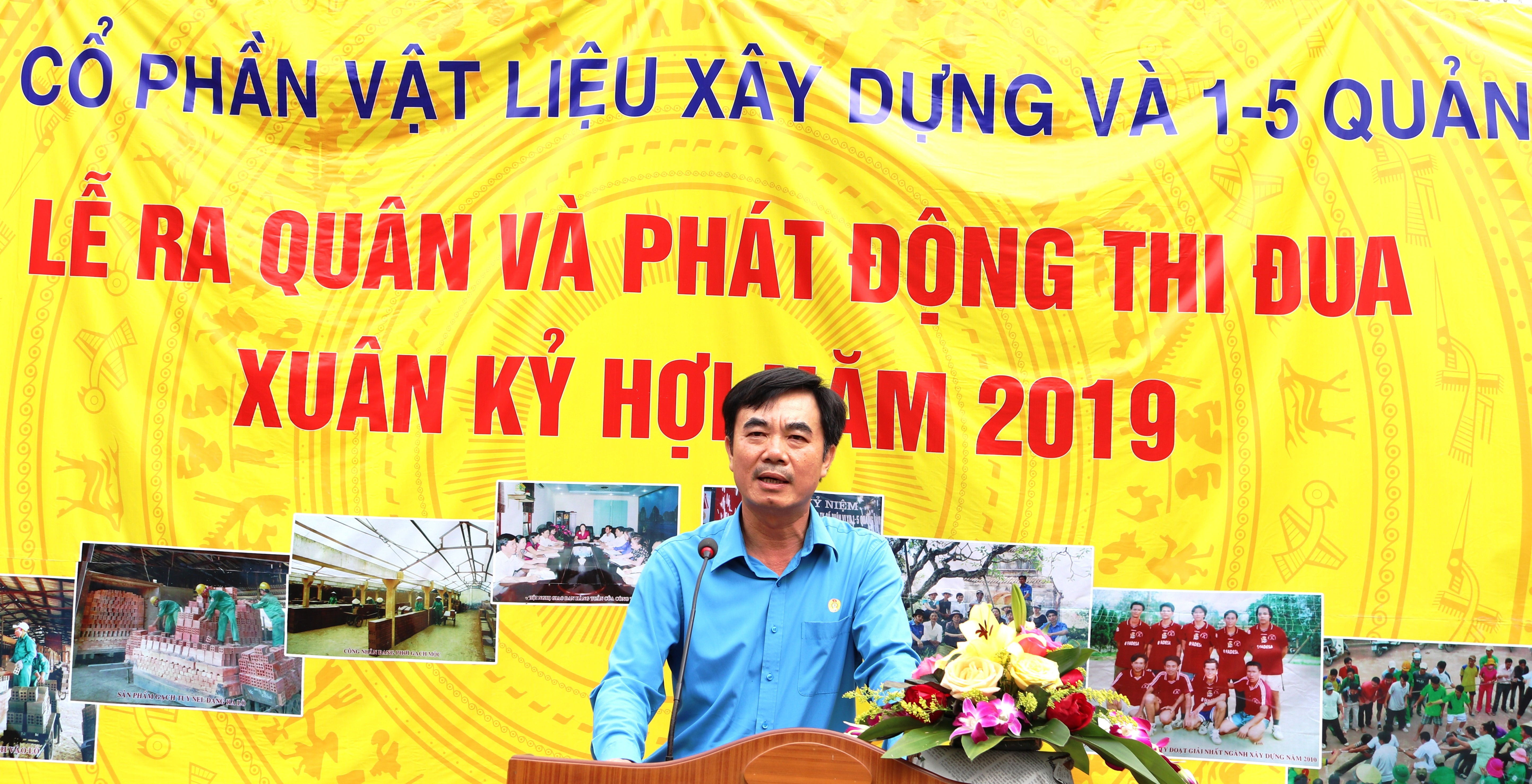 Đồng chí Nguyễn Lương Bình, TUV - Chủ tịch LĐLĐ tỉnh phát biểu tại lễ ra quân cổ phần VLXD 1-5
