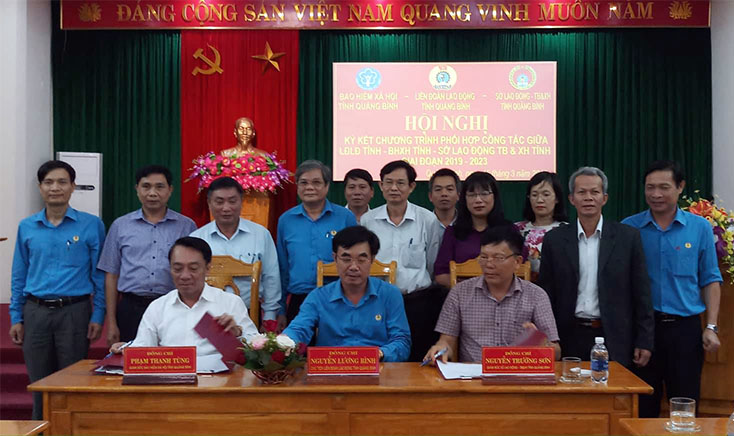 Tại hội nghị, sau khi các đại biểu đã thảo luận và đưa ra các giải pháp phối hợp trong thời gian tới, LĐLĐ tỉnh, BHXH tỉnh và Sở LĐ-TB và XH đã thống nhất và tổ chức ký kết chương trình phối công tác giai đoạn 2019-2023.