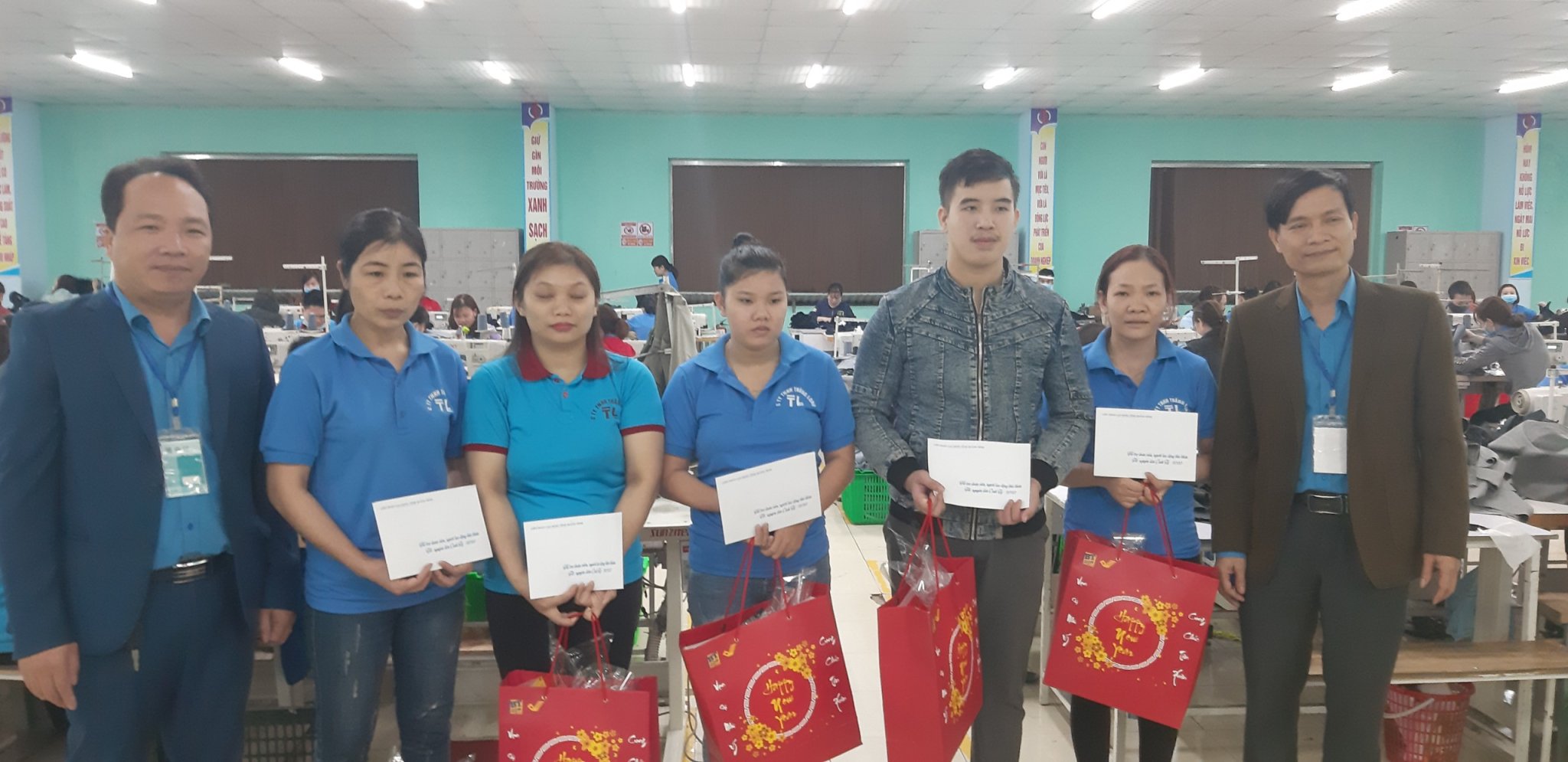Sáng 13-1-2020, Thường trực LĐLĐ tỉnh và Công đoàn ngành Công Thương Quảng Bình đã đến thăm và tặng quà cho các đoàn viên, người lao động có hoàn cảnh đặc biệt khó khăn tại Công ty TNHH May Thăng Long nhân dịp Xuân Canh Tý năm 2020.