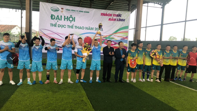 Tại Đại hội Thể dục thể thao, Thường trực Công đoàn ngành đã đến tặng hoa và trao thưởng đội bóng đá nam vô địch giải 1.000.000 đồng.