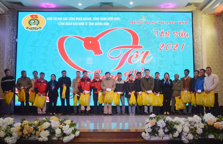 Nhằm bảo đảm cho mỗi đoàn viên, người lao động đều được đón Tết Nguyên đán Tân Sửu 2021 sum vầy, đầm ấm, thời gian qua, Khối thi đua các Công đoàn ngành, Công đoàn Viên chức và Công đoàn Khu kinh tế Quảng Bình đã xây dựng kế hoạch và huy động tối đa mọi nguồn lực để tổ chức các chương trình chăm cho Tết cho đoàn viên, người lao động.