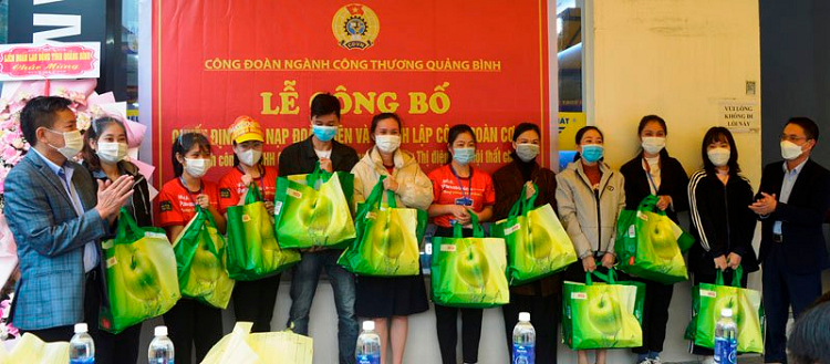 Công đoàn ngành Công Thương Quảng Bình tổ chức Lễ công bố quyết định thành lập mới CĐCS và tặng quà CNLĐ bị ảnh hưởng của dịch bệnh Covid 19
