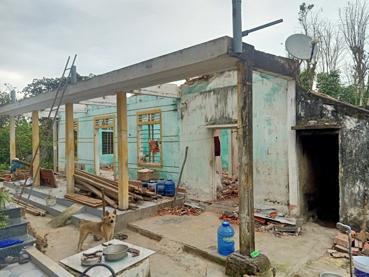 Căn nhà củ và nhà xây mới của gia đình đoàn viên Hồ Viết Minh