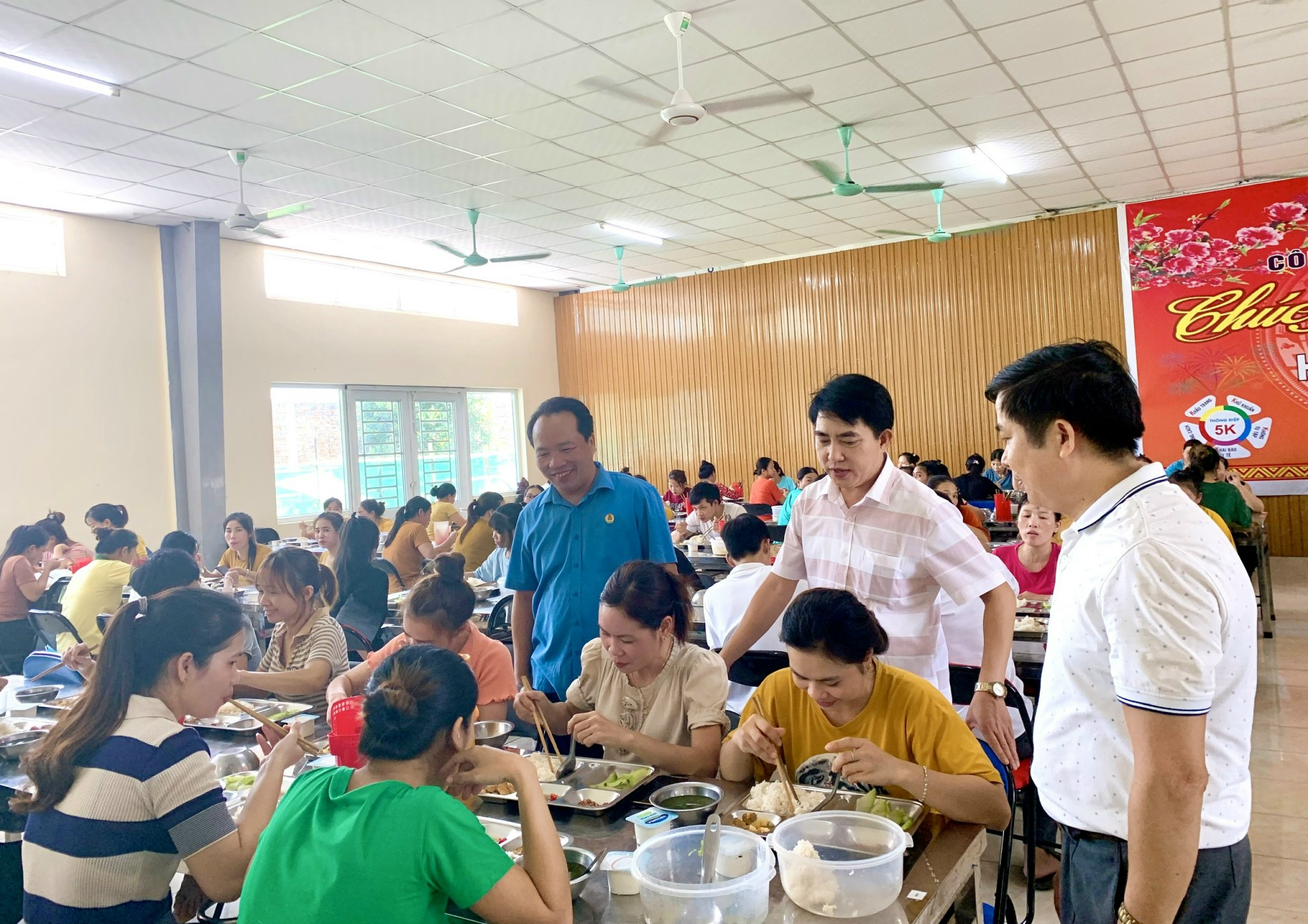 Làm việc với chủ sử dụng lao động và BCH CĐCS các đơn vị khảo sát, Đoàn khảo sát đã chỉ đạo các doanh nghiệp cùng BCH CĐCS quan tâm tới chất lượng bữa ăn ca của NLĐ, nên tự tổ chức bữa ăn ca nhằm tiết kiệm chi phí; đảm bảo an toàn vệ sinh thực phẩm (ATVSTP) thông qua lựa chọn nhà thầu có uy tín, nguồn gốc xuất xứ thực phẩm tuyệt đối không để xảy ra ngộ độc thực phẩm phẩm ảnh hưởng nghiêm trọng đến sức khỏe, tính mạng của NLĐ để xảy ra đình công hoặc khởi kiện; ký kết bản thỏa ước lao động tập thể (TƯLĐTT) có nội dung về bữa ăn ca của NLĐ đảm bảo định lượng trong một suất ăn để người công nhân đủ tái tạo sức lao động.. Doanh nghiệp cần hợp tác với Công đoàn trong việc cải thiện chất lượng bữa ăn hằng ngày cho NLĐ, chắc chắn DN sẽ hưởng lợi bởi năng suất lao động của NLĐ sẽ được tăng lên.