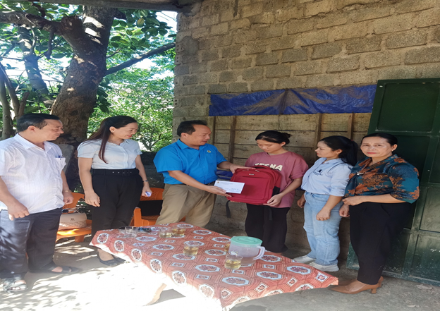 BTV, Nữ công Công đoàn ngành cùng Chủ tịch Phụ nữ Xã Quảng Tiên, TX Ba Đồn đến thăm, động viên và trao hỗ trợ cho cháu Yến.