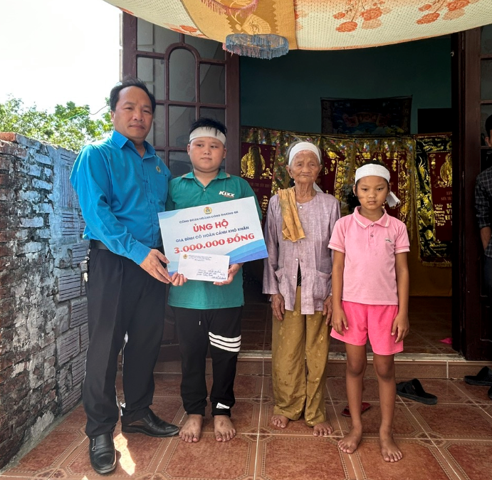 Đây là trường hợp đoàn viên có hoàn cảnh đặc biệt khó khăn khi đã ly hôn với Vợ đã lâu, một mình nuôi 2 con nhỏ. Ngày 20/8/2023, Công nhân Phạm Văn Hiếu không may bị tai nạn điện giật chết khi đánh bắt cá tại gia đình để lại 2 con nhỏ giờ phải nương tựa với ông bà nội già yếu đã trên 85 tuổi, một cháu học lớp 4, một cháu học lớp 7. Trước hoàn cảnh thương tâm này, BCH Công đoàn cơ sở Công ty TNHH Vương Thuận đã kịp thời kêu gọi đoàn viên quyên góp được 25 triệu đồng để giúp 2 cháu tiếp tục cắp sách đến trường, Công đoàn ngành Công Thương Quảng Bình cũng đã hỗ trợ khó khăn trước mắt 3 triệu đồng cho gia đình.
