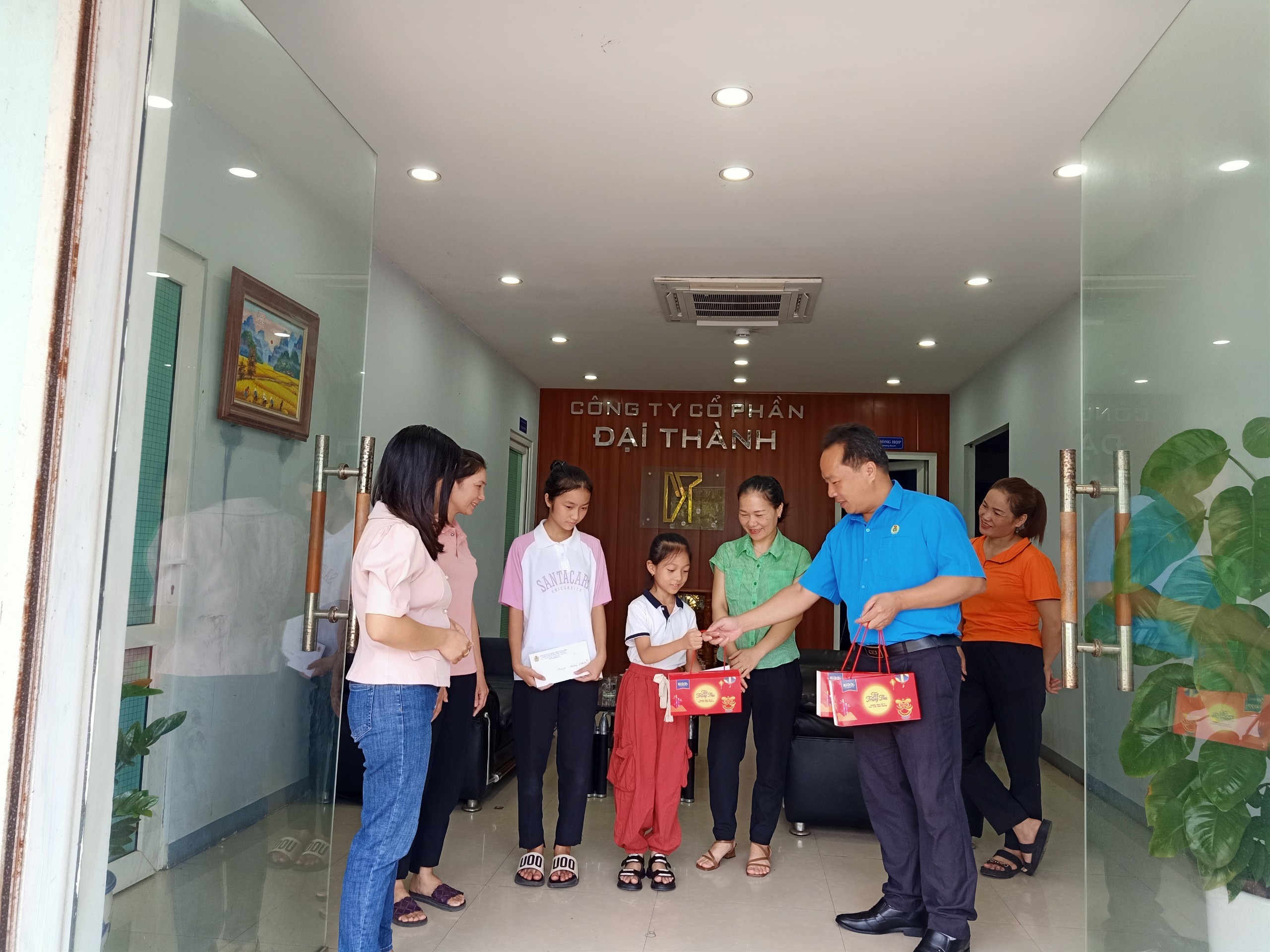 Đ/c Phan Mạnh Hùng – Chủ tịch CĐN trao học bống và quà cho các cháu con CNLĐ tại Công ty Cổ phần Đại Thành