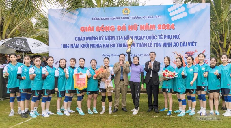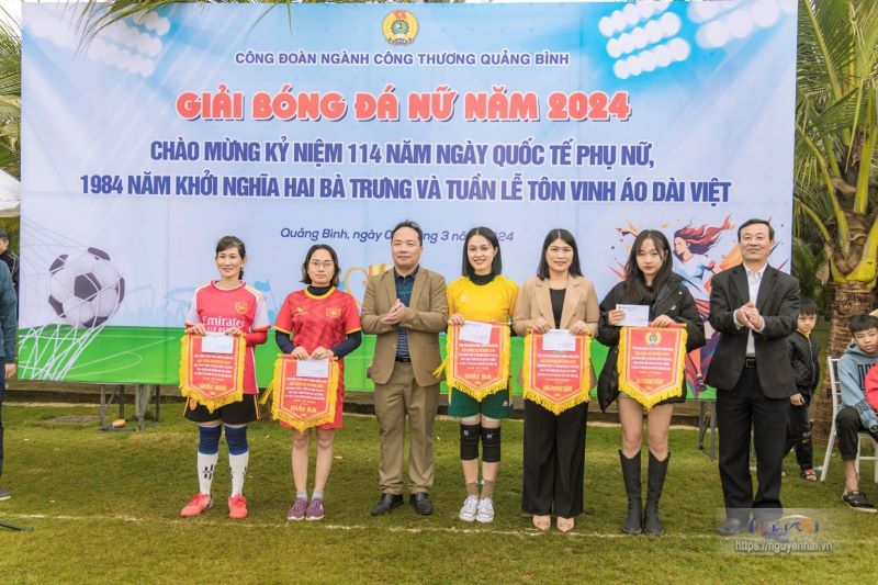 Ngày 2/3, Công đoàn ngành Công thương Quảng Bình tổ chức giải giao lưu bóng đá nữ giữa các công đoàn cơ sở (CĐCS) trực thuộc và doanh nghiệp ngành Công thương năm 2024 với sự tham gia của 6 đội bóng nhân dịp kỷ niệm 114 năm Ngày Quốc tế Phụ nữ (8/3/1910-8/3/2024), 1984 năm khởi nghĩa Hai Bà Trưng và Tuần lễ tôn vinh áo dài Việt 2024.