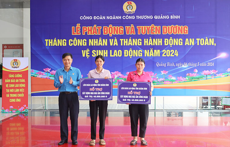 Hai Mái ấm Công đoàn được trao trong lễ phát động tháng "Tháng Công nhân" ngành Công Thương Quảng Bình.