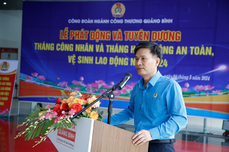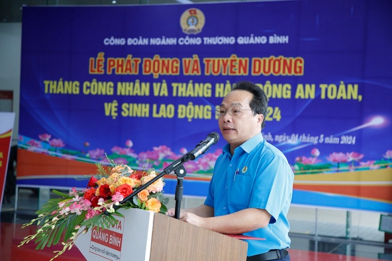 Phát biểu tại buổi lễ, ông Phan Mạnh Hùng - Chủ tịch Công đoàn ngành Công Thương tỉnh Quảng Bình - nhấn mạnh, để "Tháng Công nhân" đạt hiệu quả, toàn ngành tập trung thực hiện tốt các nội dung như: Tăng cường công tác tuyên truyền phổ biến, giáo dục pháp luật trong cán bộ, đoàn viên, người lao động; tiếp tục chăm lo, bảo vệ quyền lợi ích hợp pháp chính đáng cho đoàn viên, người lao động; Chấp hành nghiêm Luật An toàn vệ sinh lao động, kiện toàn hệ thống an toàn vệ sinh viên trong doanh nghiệp; Đẩy mạnh công tác huấn luyện ATVSLĐ trong sản xuất kinh doanh; cải thiện điều kiện làm việc, chăm sóc sức khỏe người lao động; cường công tác thanh tra, kiểm tra…