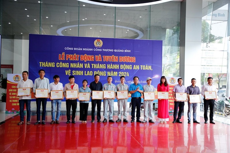 Ngày 4.5, Công đoàn ngành Công Thương tỉnh Quảng Bình phối hợp cùng công đoàn cơ sở Công ty cổ phần Toyota Quảng Bình tổ chức lễ phát động và tuyên dương “Tháng Công nhân” và “Tháng hành động về an toàn, vệ sinh lao động” năm 2024.