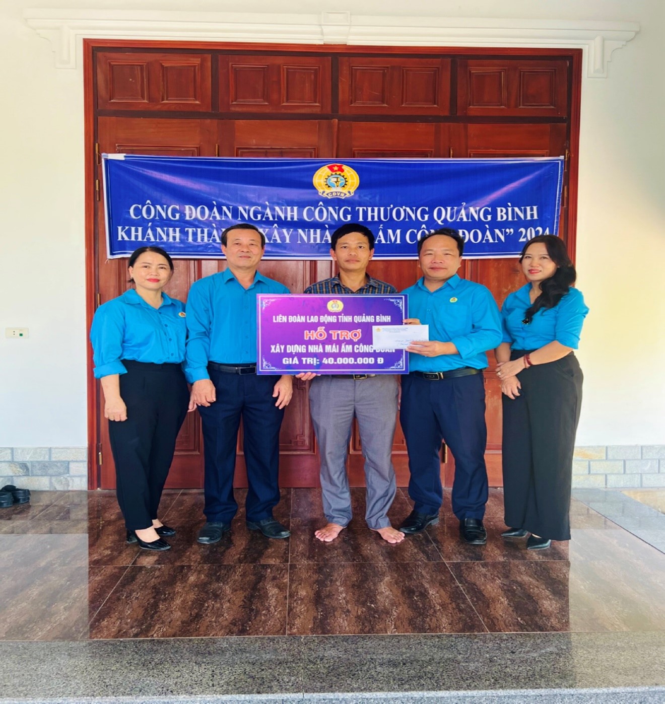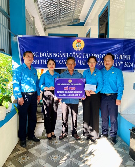 Trong chuỗi các hoạt động chào mừng kỷ niệm 95 năm ngày thành lập Công đoàn Việt Nam (28/7/1929 – 28/7/2024). Trong các ngày cuối tháng 7 và đầu tháng 8/2024, Thường vụ Công đoàn ngành Công Thương Quảng Bình đã đến thăm và bàn giao 4 nhà Mái ấm Công đoàn cho các gia đình đoàn viên gồm: Nguyễn Sỹ Hạnh, Nguyễn Văn Cường, Trần Thị Thành và Trương Quang Dương, là những đoàn viên thuộc CĐCS Công ty Cổ phần Tổng Công ty Sông Gianh trực thuộc Công đoàn ngành Công Thương. Trong đó 03 nhà được hỗ trợ từ quỹ xã hội Công đoàn LĐLĐ tỉnh, mỗi nhà 40 triệu đồng và 01 nhà được hỗ trợ từ nguồn quỹ xã hội Công đoàn Công Thương Việt Nam, 50 triệu đồng.