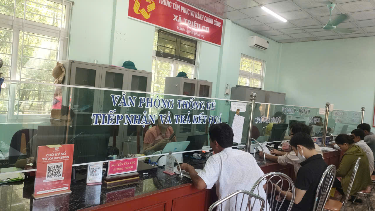 Ảnh: Người dân thực hiện dịch vụ công trực tuyến tại Trung tâm Phục vụ Hành chính công xã Triệu Cơ